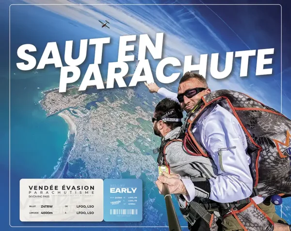 Sur Box Ludique, on aime les coffrets qui ont du sens. Ceux qui ne se contentent pas de surprendre, mais qui installent un vrai moment. La box saut en parachute de Vendée Évasion Parachutisme coche toutes les cases : un cadre naturel spectaculaire aux Sables d’Olonne, une organisation sans détour, et un souvenir qui dépasse la journée elle-même. Quinze minutes de montée en avion pour lire le rivage et les îles, cinquante secondes de chute libre pour l’instant pur, puis cinq à six minutes sous voile, dans la douceur du pilotage, avant un posé au plus près des proches. C’est propre, net, maîtrisé.